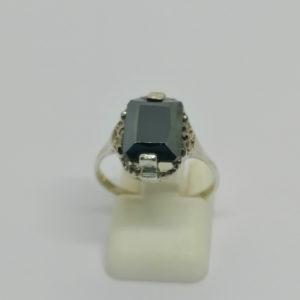 Bague argent, modèle typé Art Déco, ajourée, rouleaux façon parchemin et sertie d’un zirconium. 400,00€ Vendu