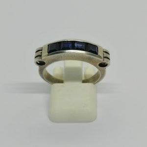 Bague argent, saphirs synthétique, modèle Art Déco.