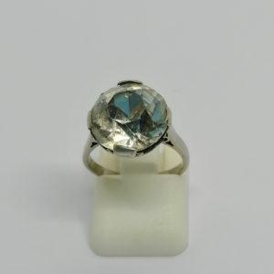 Bague argent, chaton ajouré, modèle solitaire avec gros strass blanc, 1930.