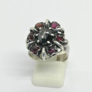 Bague argent, de forme octogonale, avec liseré d’émail noir et pierre rouge de synthèse, Art Déco, Français. 590,00€ Vendu
