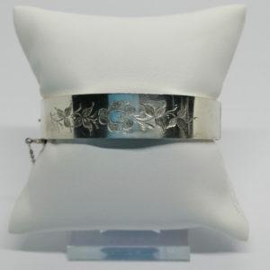 Bracelet argent, petit jonc plat, avec motif végétal, Art Nouveau.