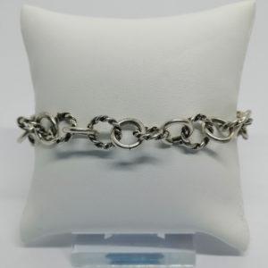 Bracelet argent, avec maillon mobile, et décor de roses et feuilles en relief, vers 1925. 420,00€ Réservé