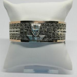Bracelet argent, jonc ajouré et tête de Pharaon, France 1900.