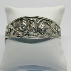 Bracelet argent, jonc en dégradé avec motifs de roses en relief, Art Nouveau,1900.