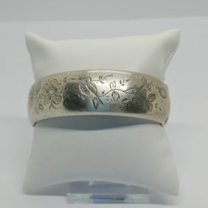 Bracelet argent, jonc ouvert avec décor de feuillages et fleurs.