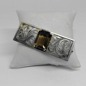Broche argent, anneaux entrelacés, sertie d’un rang de citrines naturelles.