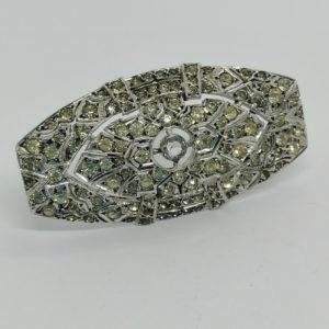 Broche argent, géométrique , ajourée et pavage de strass blanc, Art Déco.