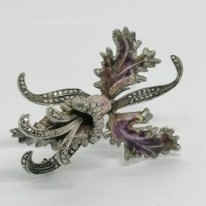 Broche argent, grande orchidée émaillée et marcasites, 1930-40.