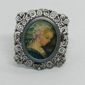 Broche argent, filigranée avec miniature peinte, travail Italien.