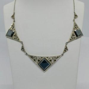 Collier argent, de forme structuré, avec sertie d’hématites et marcasites, Art Déco, vers 1930. 950,00€