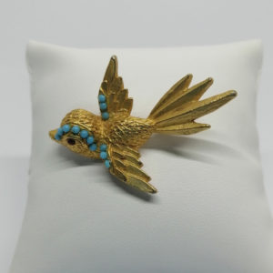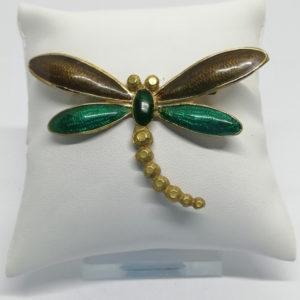 Broche métal blanc, forme étoile et pavage de strass blanc, au centre couleur émeraude, 1930-40. 100,00€ Vendu