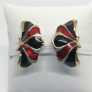 Boucles d’oreilles, clip, émaillé rouge et noir, vers 1960-80.