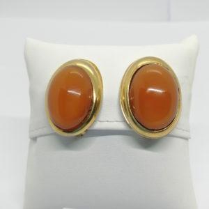 Boucles d’oreilles, clip, ovale et cabochon de verre couleur cornaline, vers 1960-80.