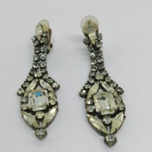 Boucles d’oreilles, clip, métal blanc et verre transparent, 1940-50.