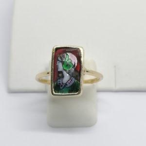 Bague en or jaune avec un émail sur cuivre, portrait, Limoges vers 1900-20.