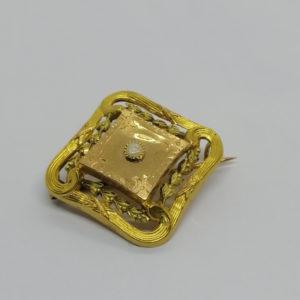 Broche or jaune, motif de marrons en relief et feuillage façon brossé, Art Nouveau, ver 1900. 790,00€