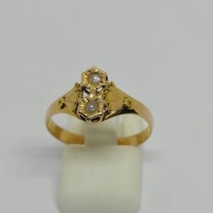 Bague or rosé et vert, et sertie grains de deux demi-perles fines, 1900.