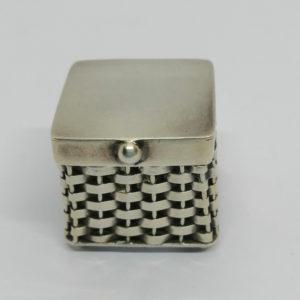 Petite boîte argent massif, façon corbeille en osier tressé, Mexico.