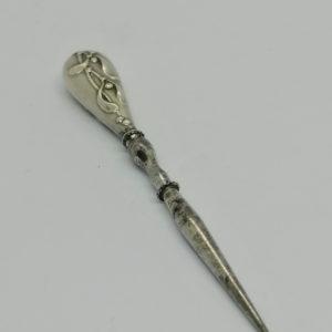 Poire à poudre miniature, noix sculptée, travail de bagnard ou marin, d’époque 1819, monture en or, rare. 550,00€ Vendu
