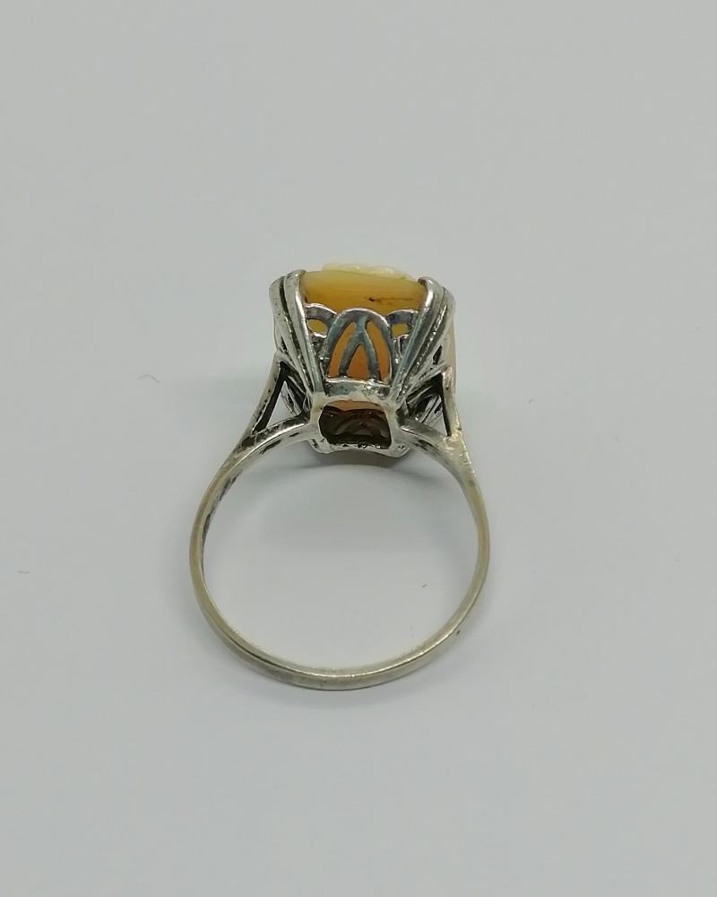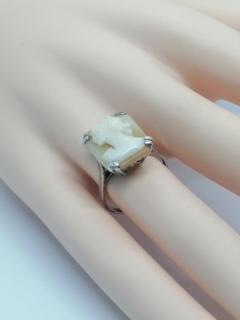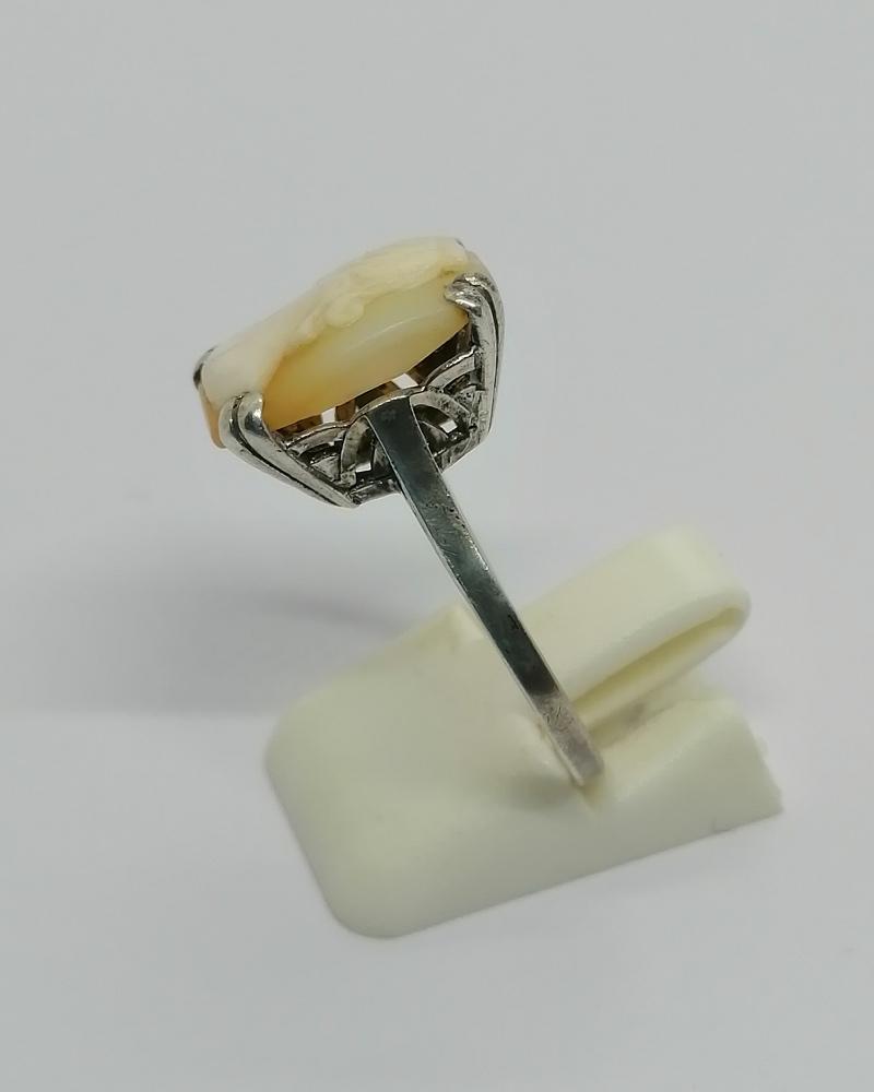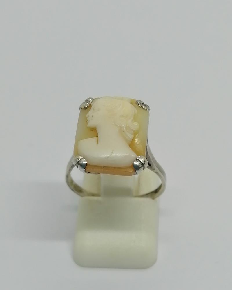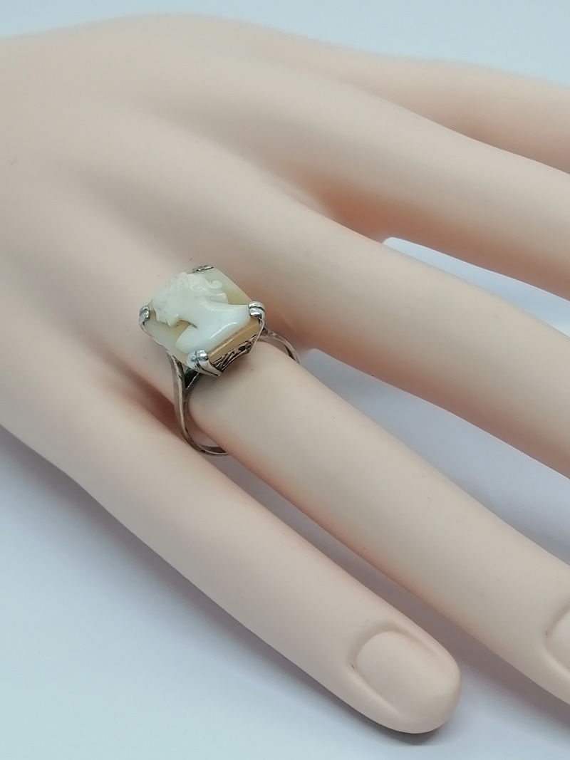 Bague argent, avec portrait sur camée coquillage, 1920-30.