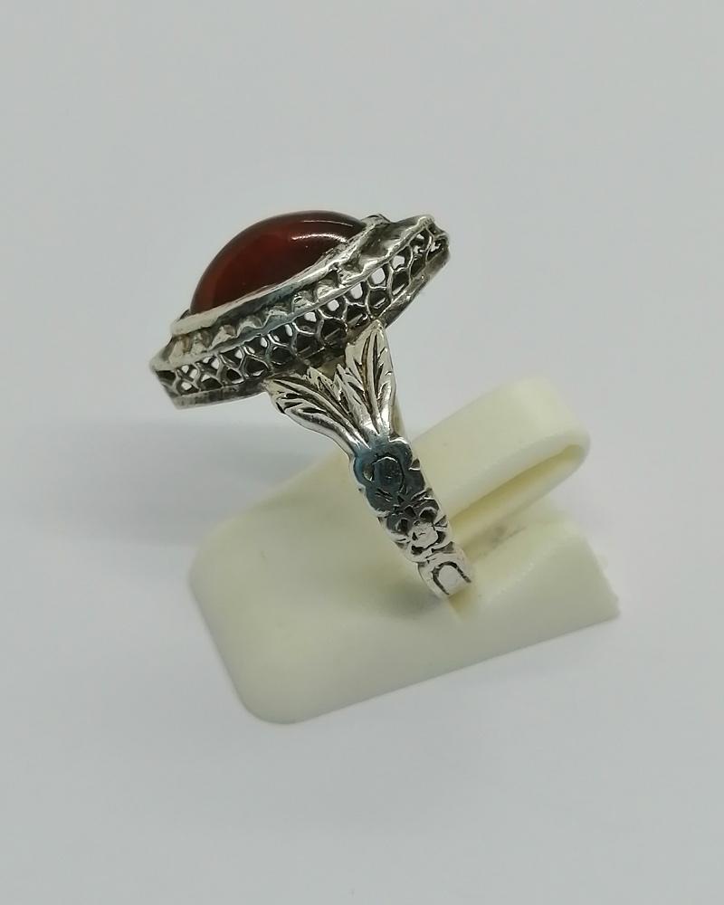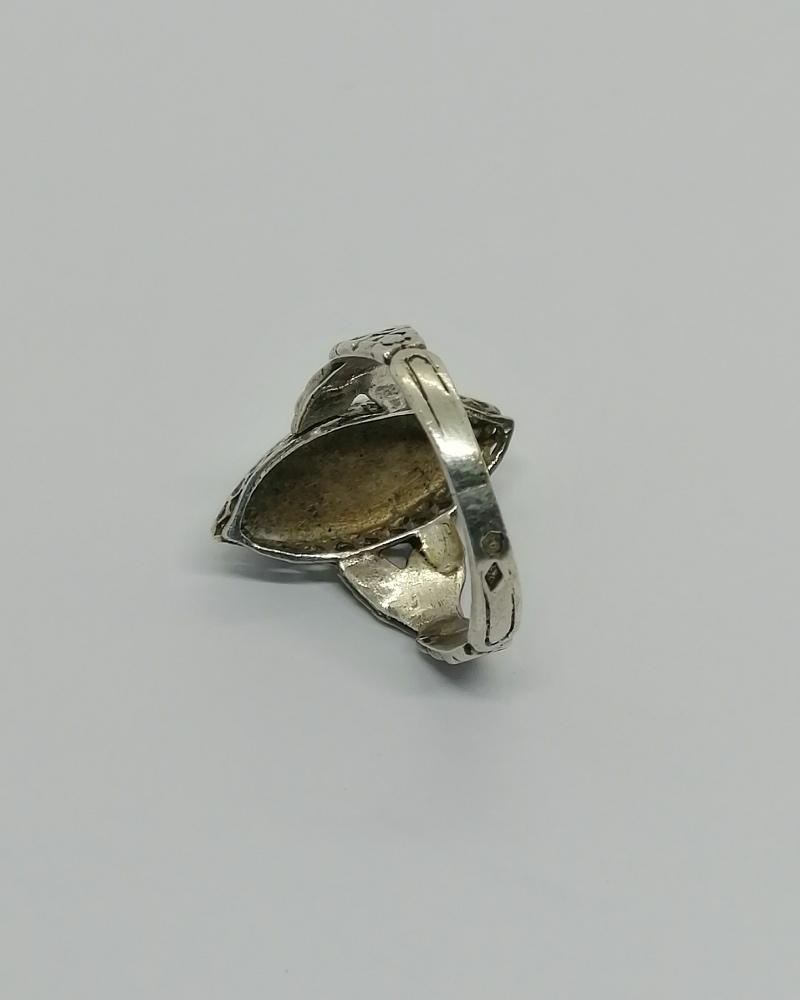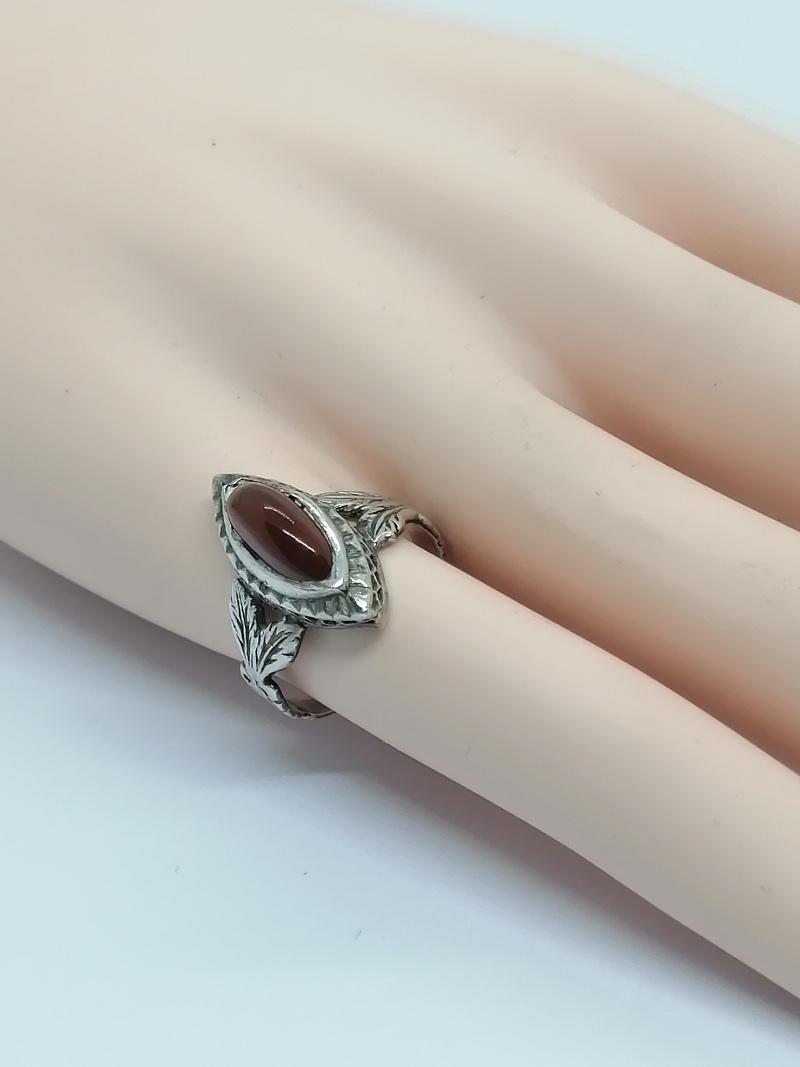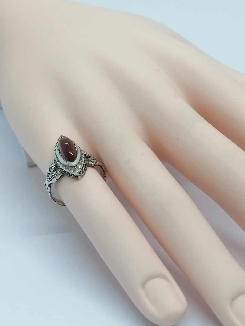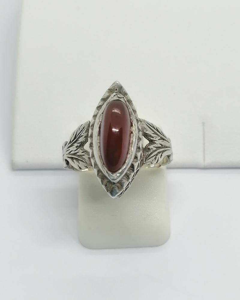 Bague argent, petite marquise avec cabochon de cornaline, vers 1880- 1900.