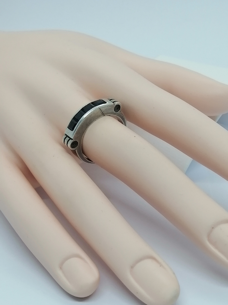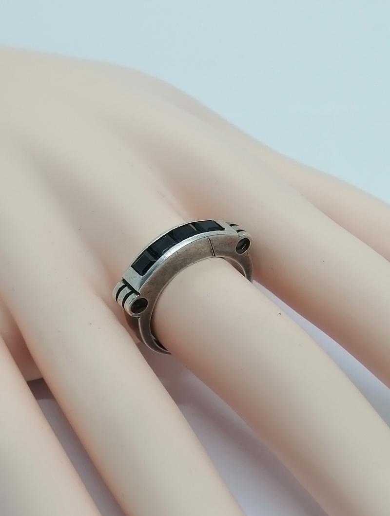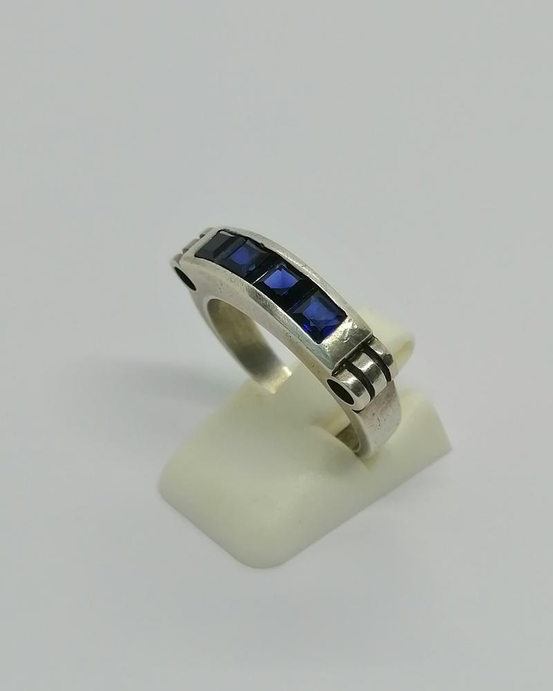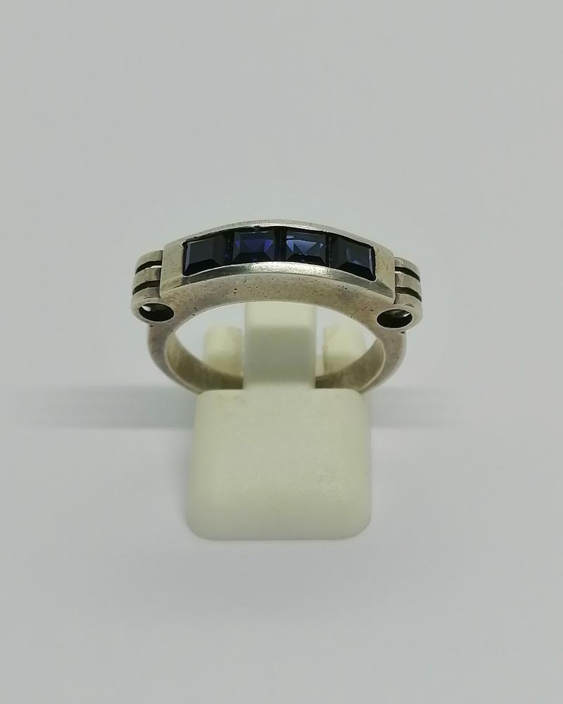Bague argent, saphirs synthétique, modèle Art Déco.