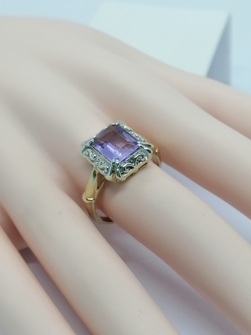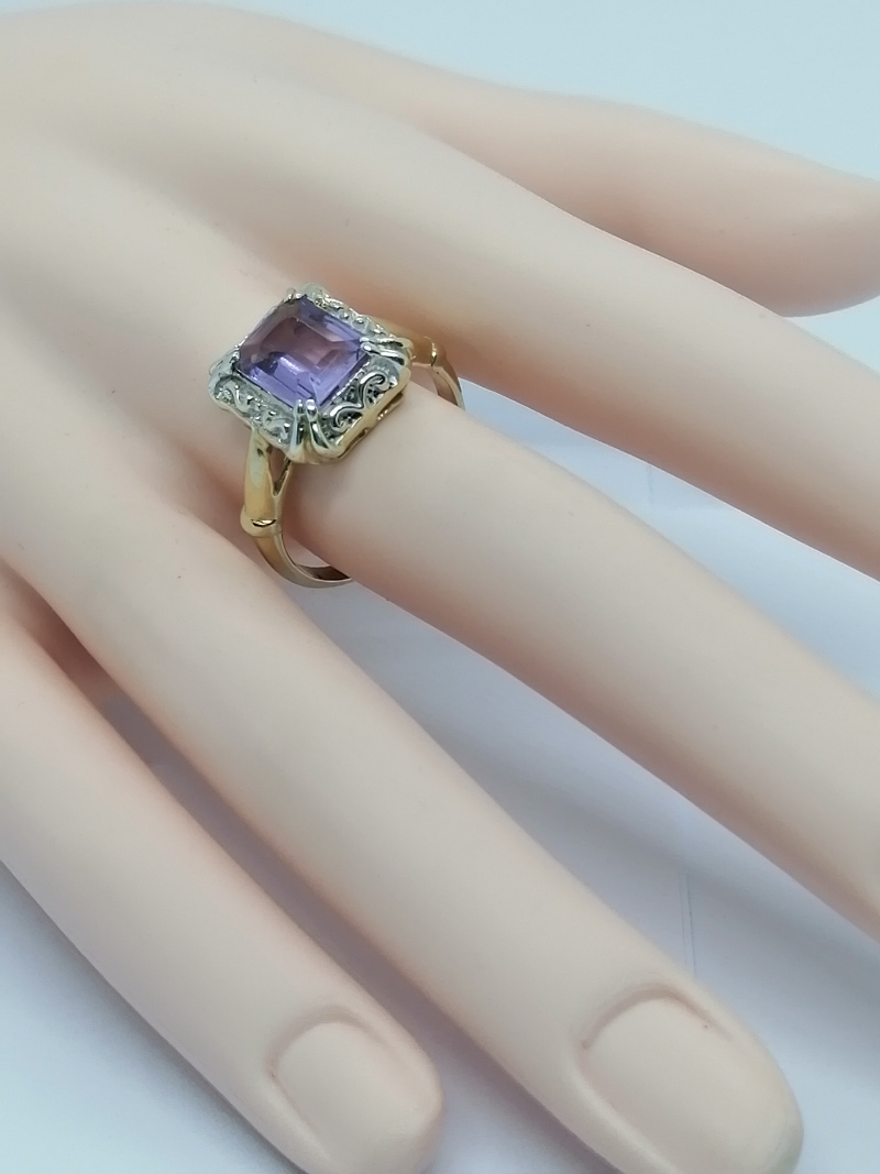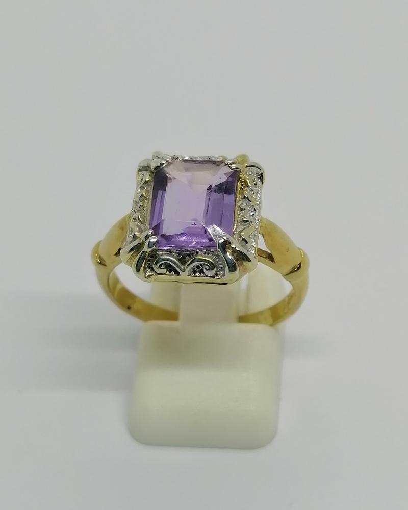 Bague argent/vermeil, avec améthyste naturelle facettée, 1920.