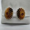 Boucles d’oreilles clip argent, vermeil, vintage, en oeil de tigre ouvragé.