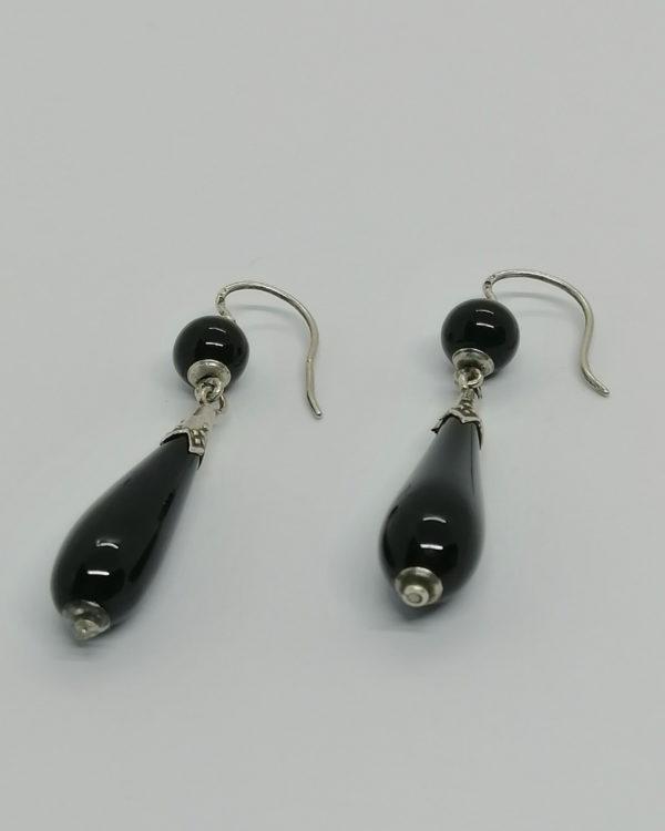 Boucles d’oreilles en argent , pendantes en onyx, 1880-1900.