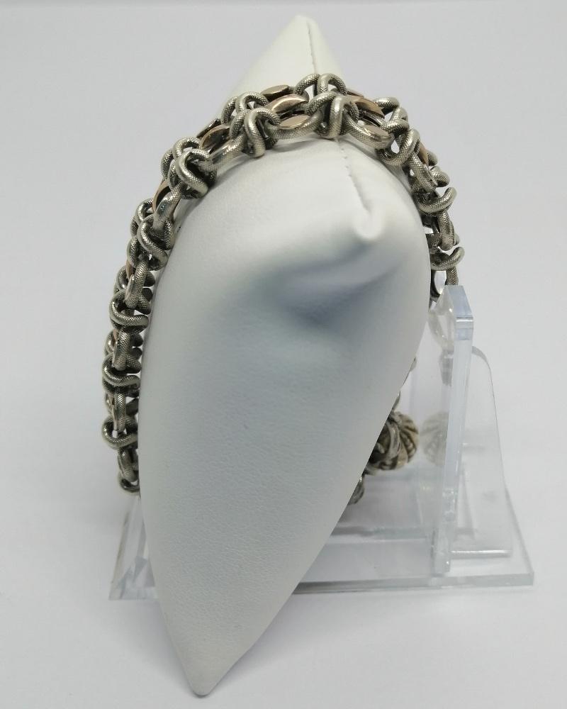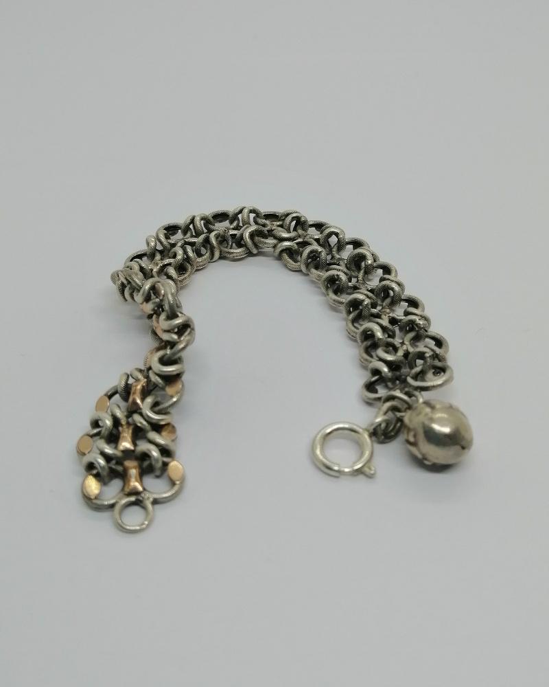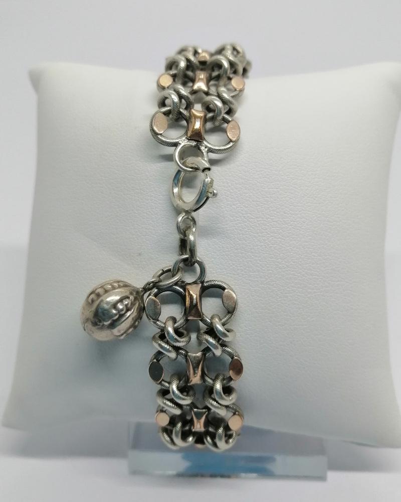Bracelet argent, maille ancienne bicolore, et breloque ronde, vers 1900-20.