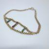 Sertie de diamants tailles anciennes, rubis et émeraudes, maillon ancien plat.