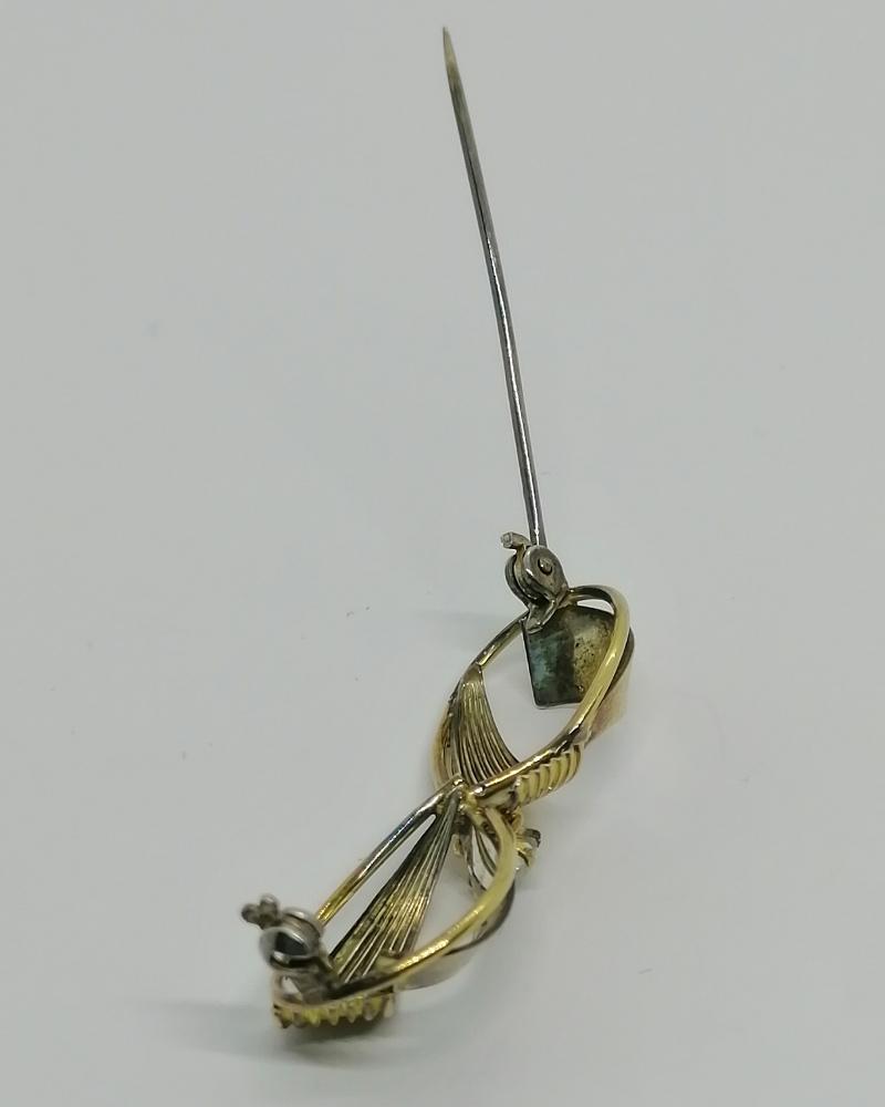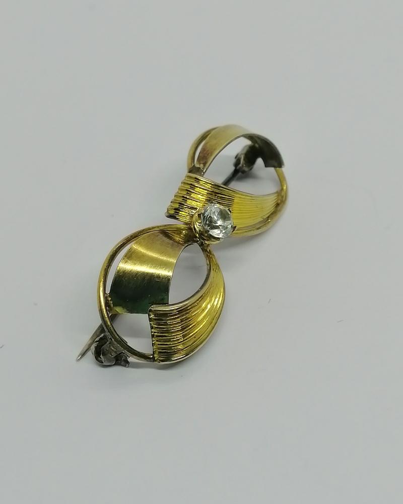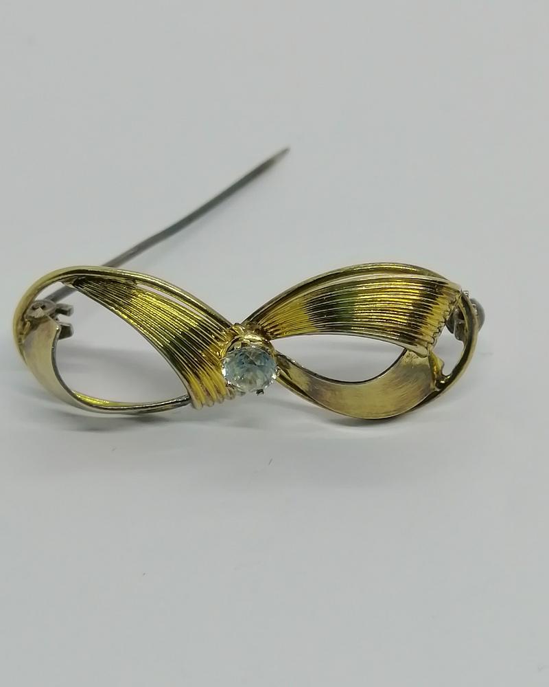 Broche argent, petit noeud en vermeil, et saphir blanc, 1930-40.