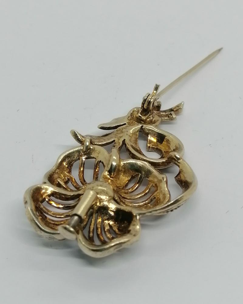 Broche argent/vermeil, pavage de marcasites et une perle de culture, 1930.