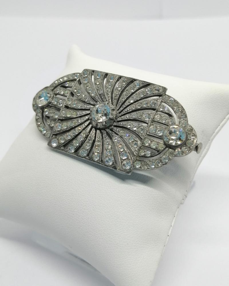 Broche avec pavage de strass blanc façon diamants, 1930, Art Déco.