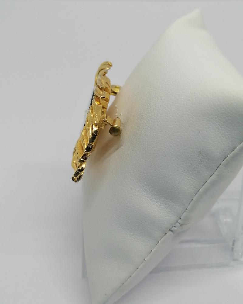 Broche en laiton jaune, avec plaque de verre noir, 1940-50.