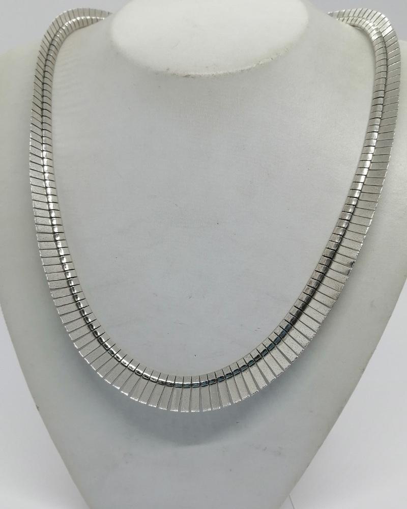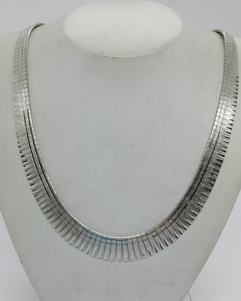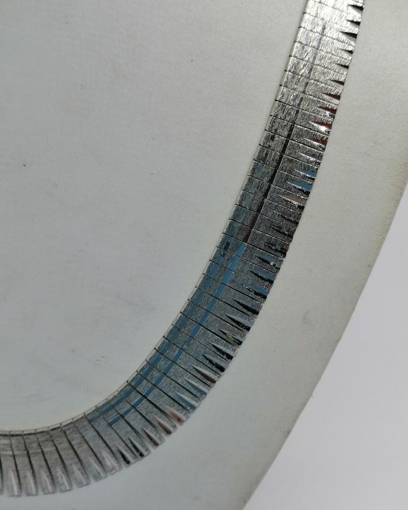 Collier argent, maille plate découpée et travail en brossé, vers 1950-60.