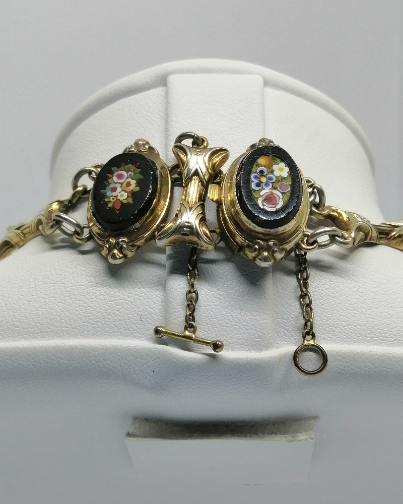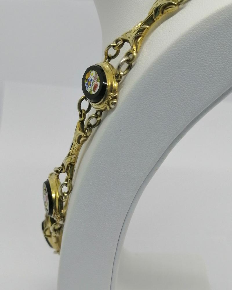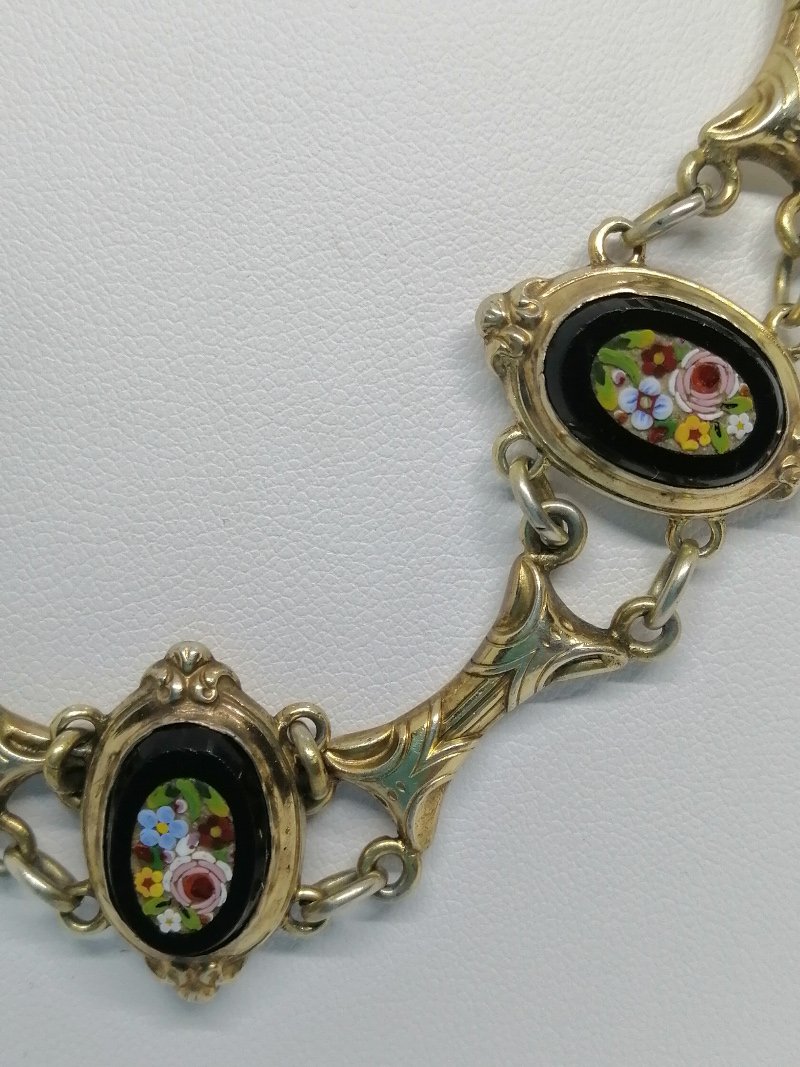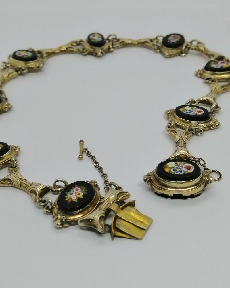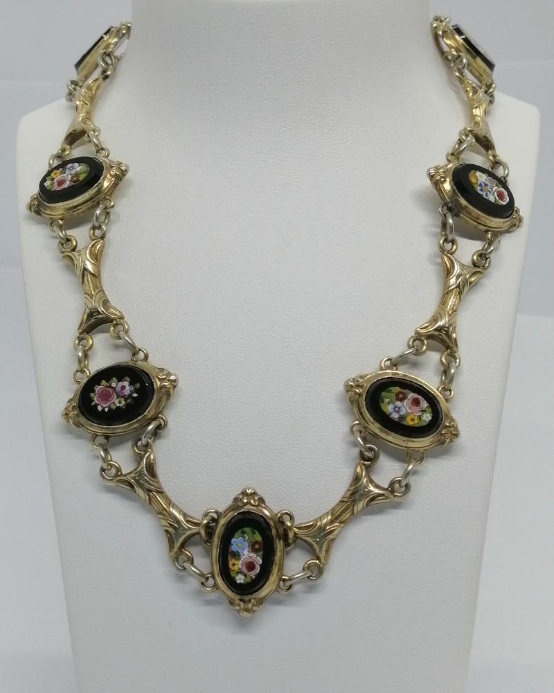 Collier en argent/vermeil, avec micro-mosaique motifs floraux, d’époque Napoléon III.