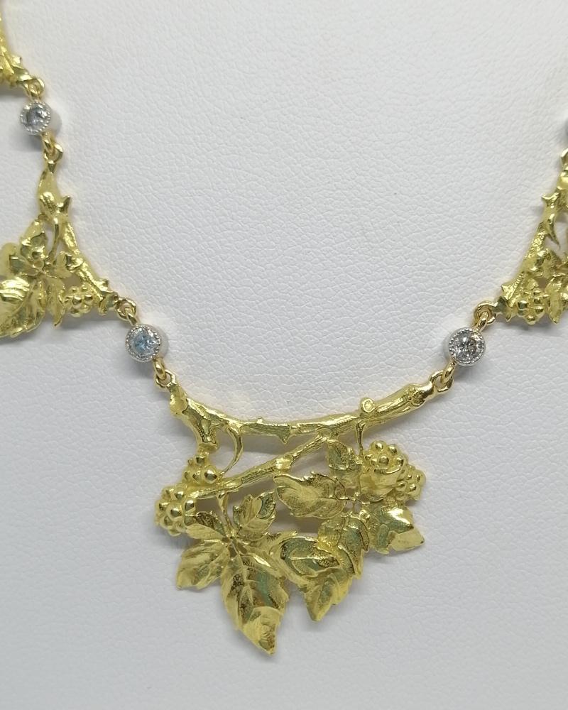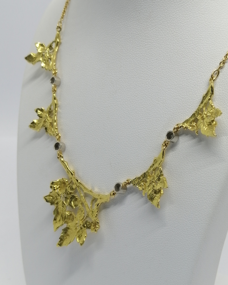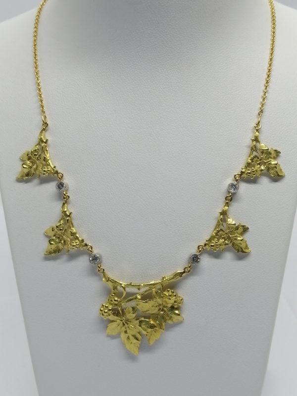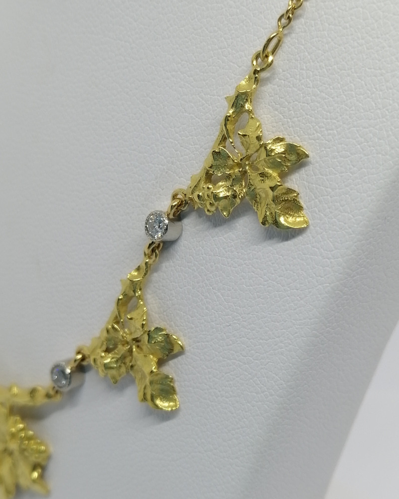 Collier en or jaune, représentant du lierre, et diamants taillés, rare modèle d’époque Art Nouveau, 1880-1900.