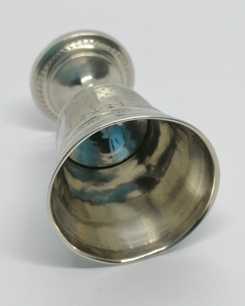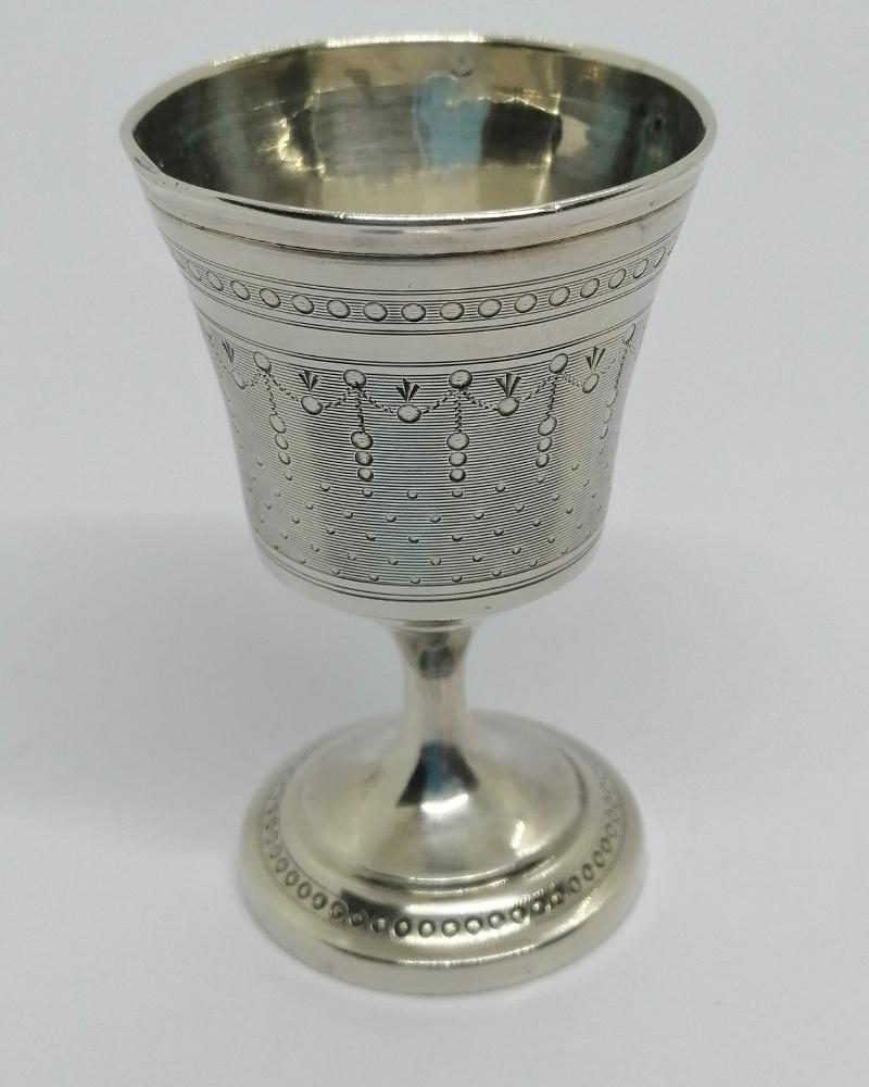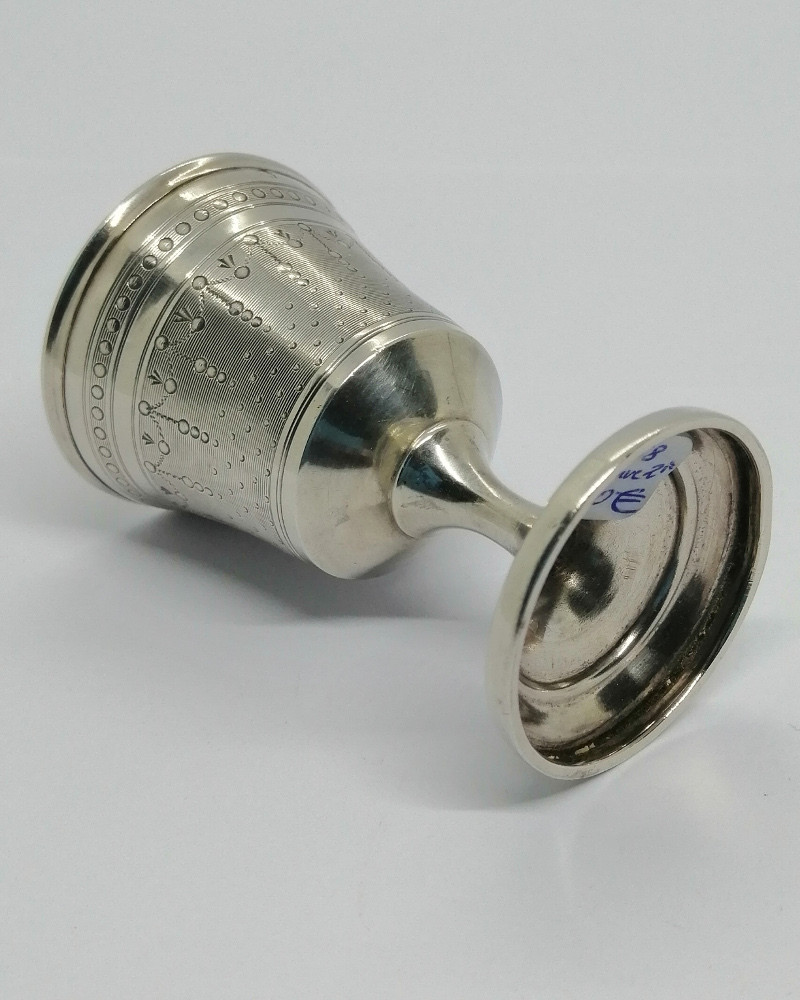 Coquetier argent massif avec pied, travail en guilloché, 1920.