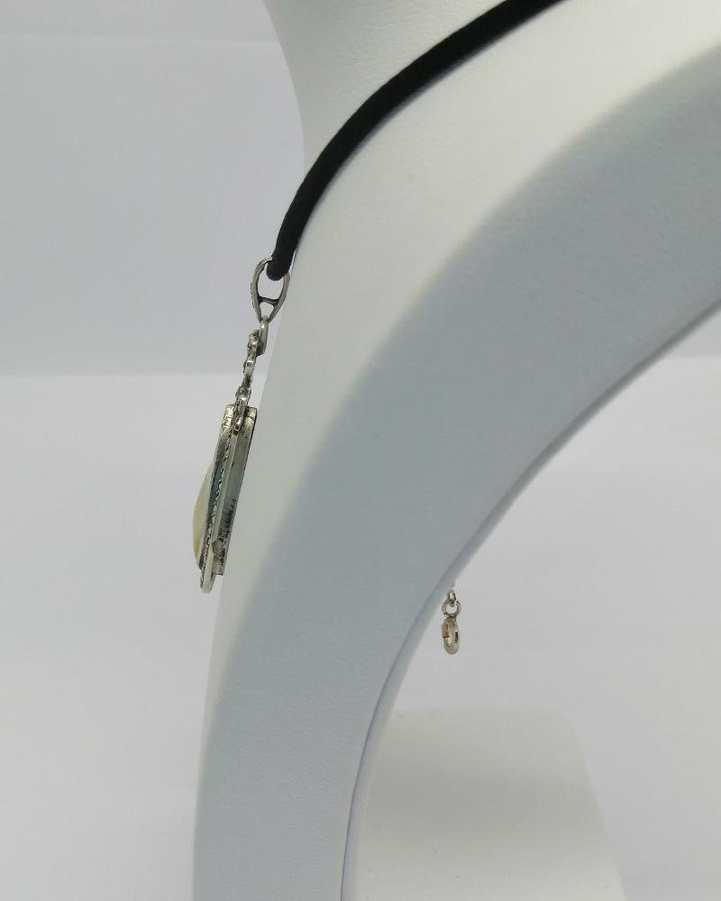 Pendentif argent, au centre une nacre autour pavage de marcasites, 1920.