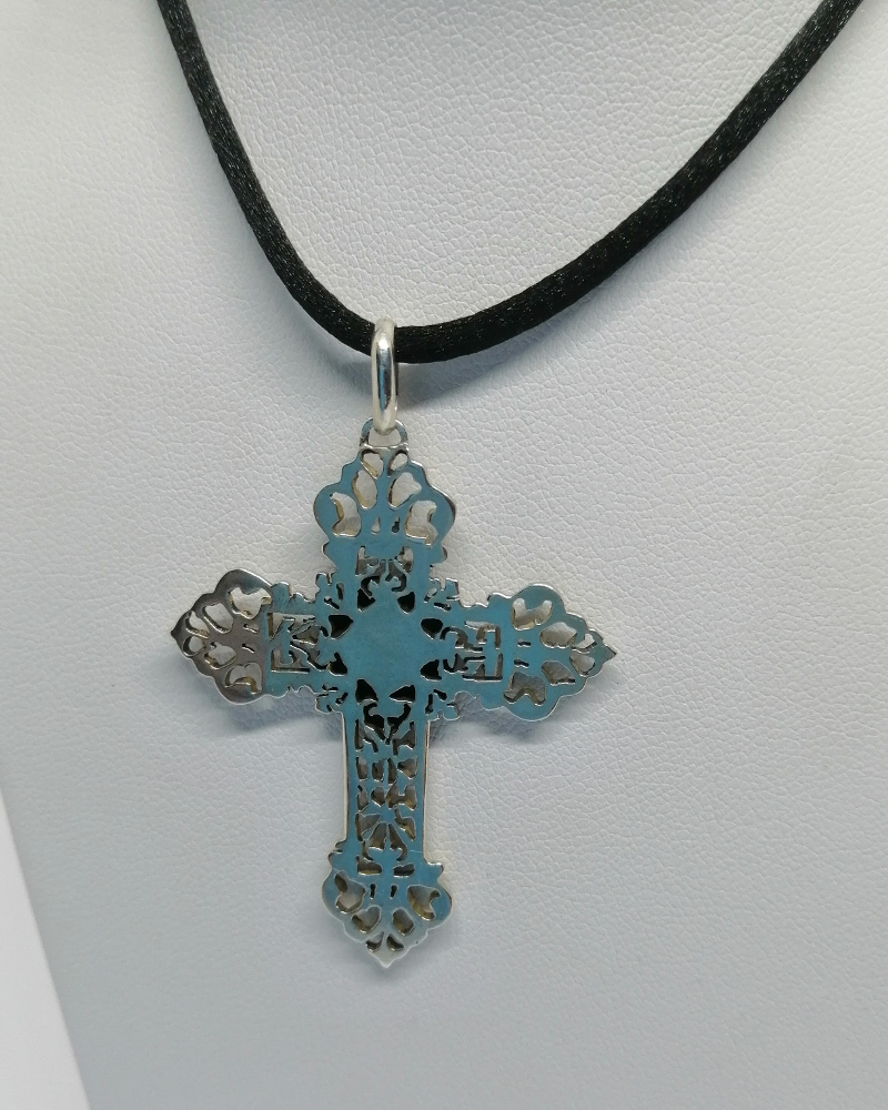Pendentif argent, croix en vermeil et émail, d’époque 1900-20.