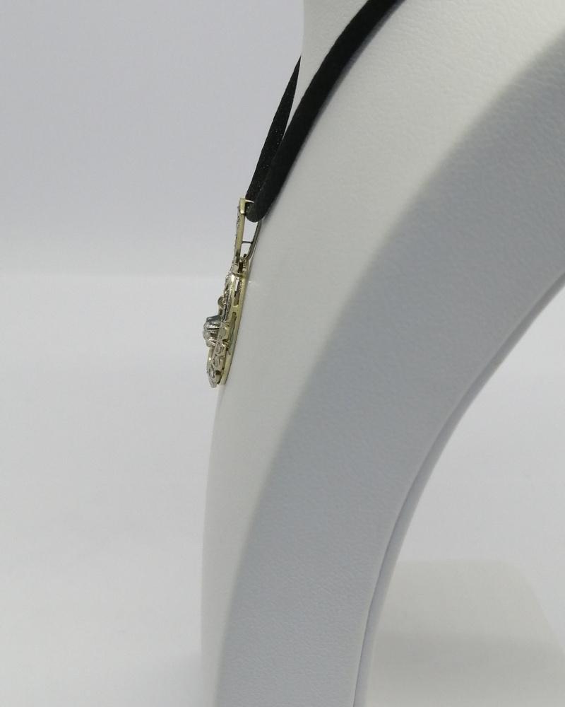Pendentif or gris et platine, roses de diamants, Art Déco vers 1925-30.