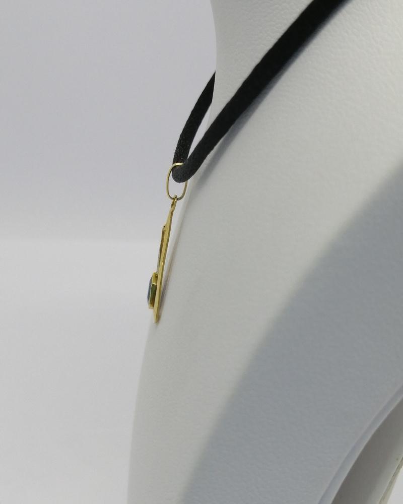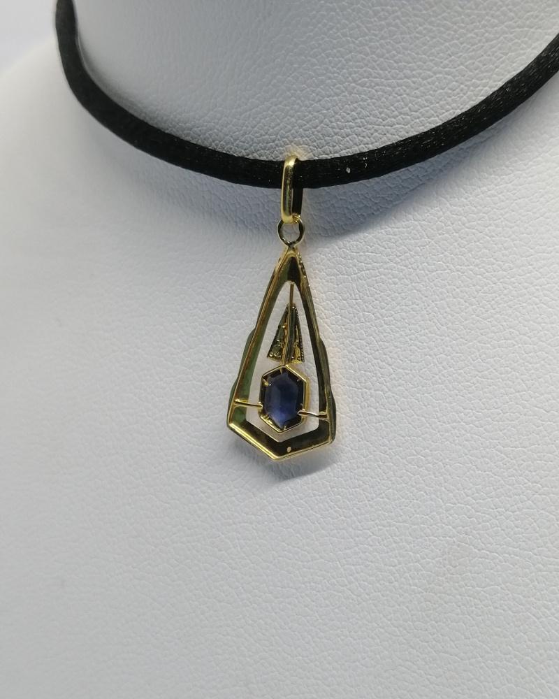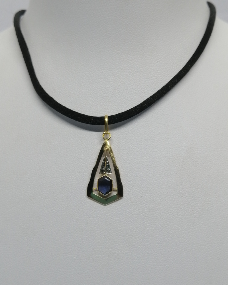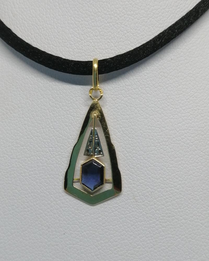 Petit pendentif en or jaune et gris avec saphir bleu synthétique, art déco vers 1925.